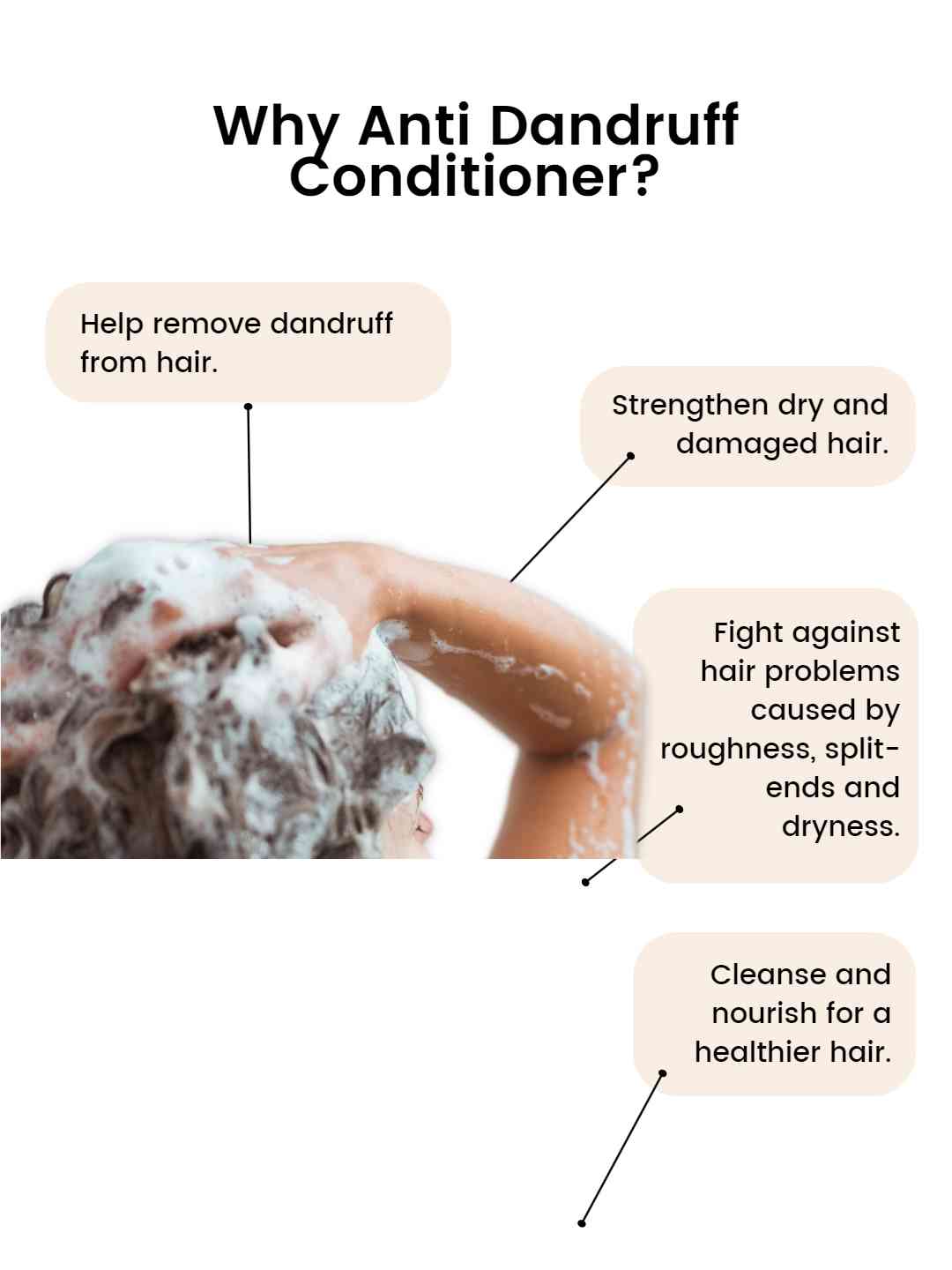 Our Anti-Dandruff Conditioner is designed to help soothe hair while gently removing dandruff to give a relaxing feeling. Packed with natural ingredients, it helps in remove dandruff and strengthen hair.