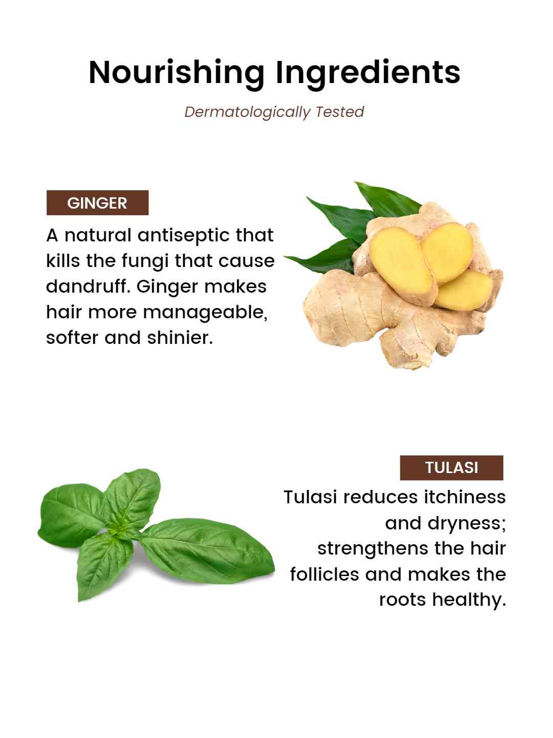 Tulasi: Tulasi reduces itchiness and dryness; strengthens the hair follicles and makes the roots healthy.