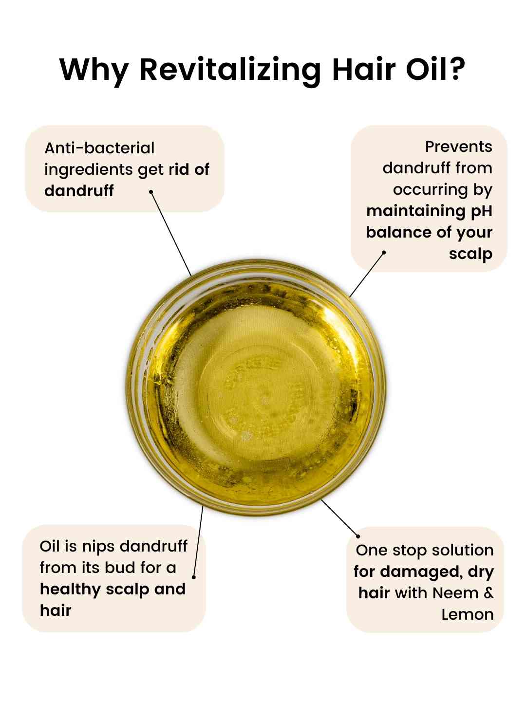 Our Anti Dandruff Hair Oil is enriched with neem oil which is known to provide relief from inflammation, itchiness and irritation due to its anti-inflammatory and anti-fungal properties.