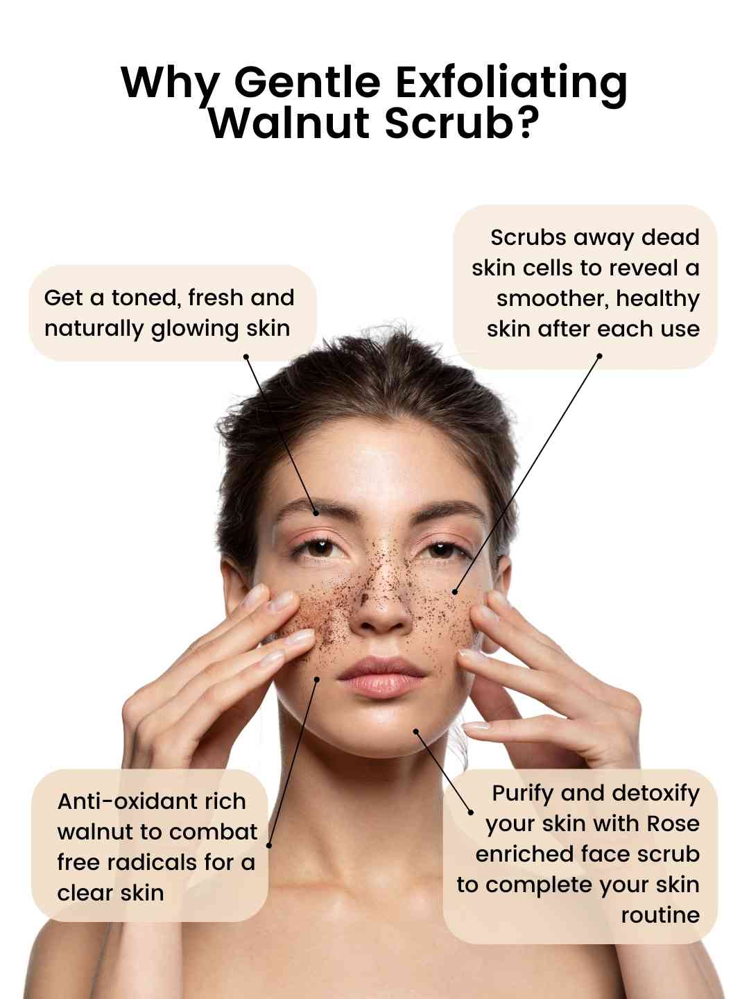 Our Gentle Exfoliating Walnut Scrub helps remove dead skin cells, blackheads, unclogs pores and deep cleanses the skin, giving the skin a healthy glow.