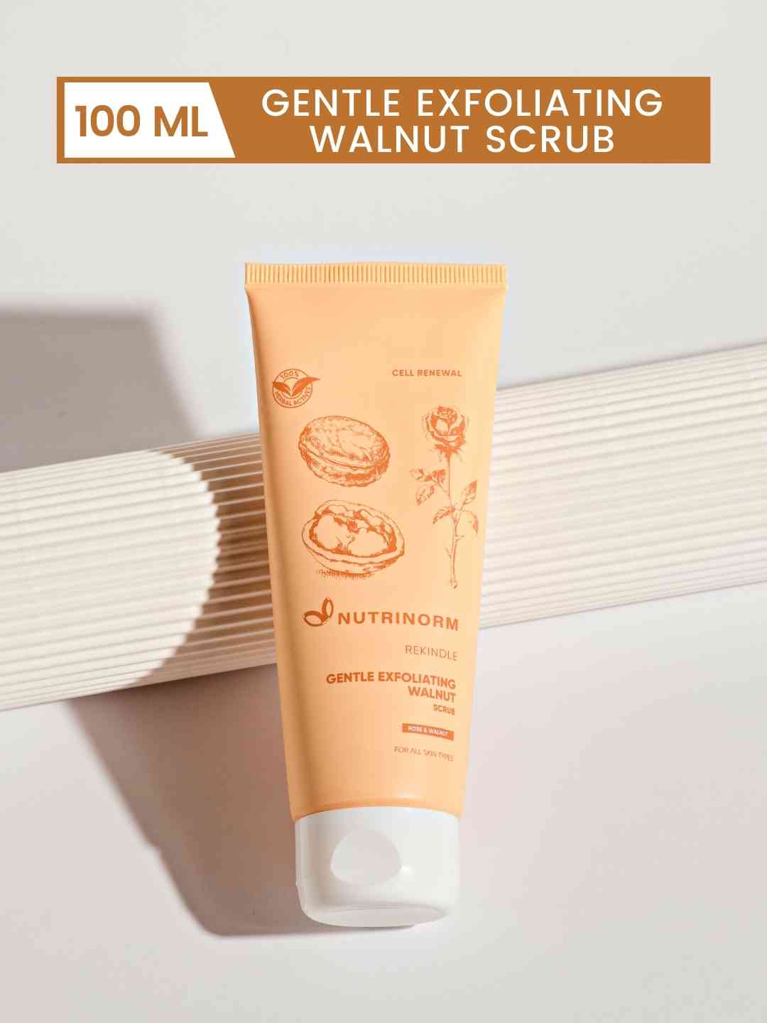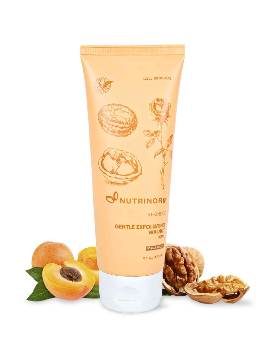 Nutrinorm Gentle Exfoliating Walnut Scrub is enriched with walnut shell powder which gives gentle exfoliation for the skin. Its natural exfoliating properties gently clears off dead skin which helps new skin cells to emerge.