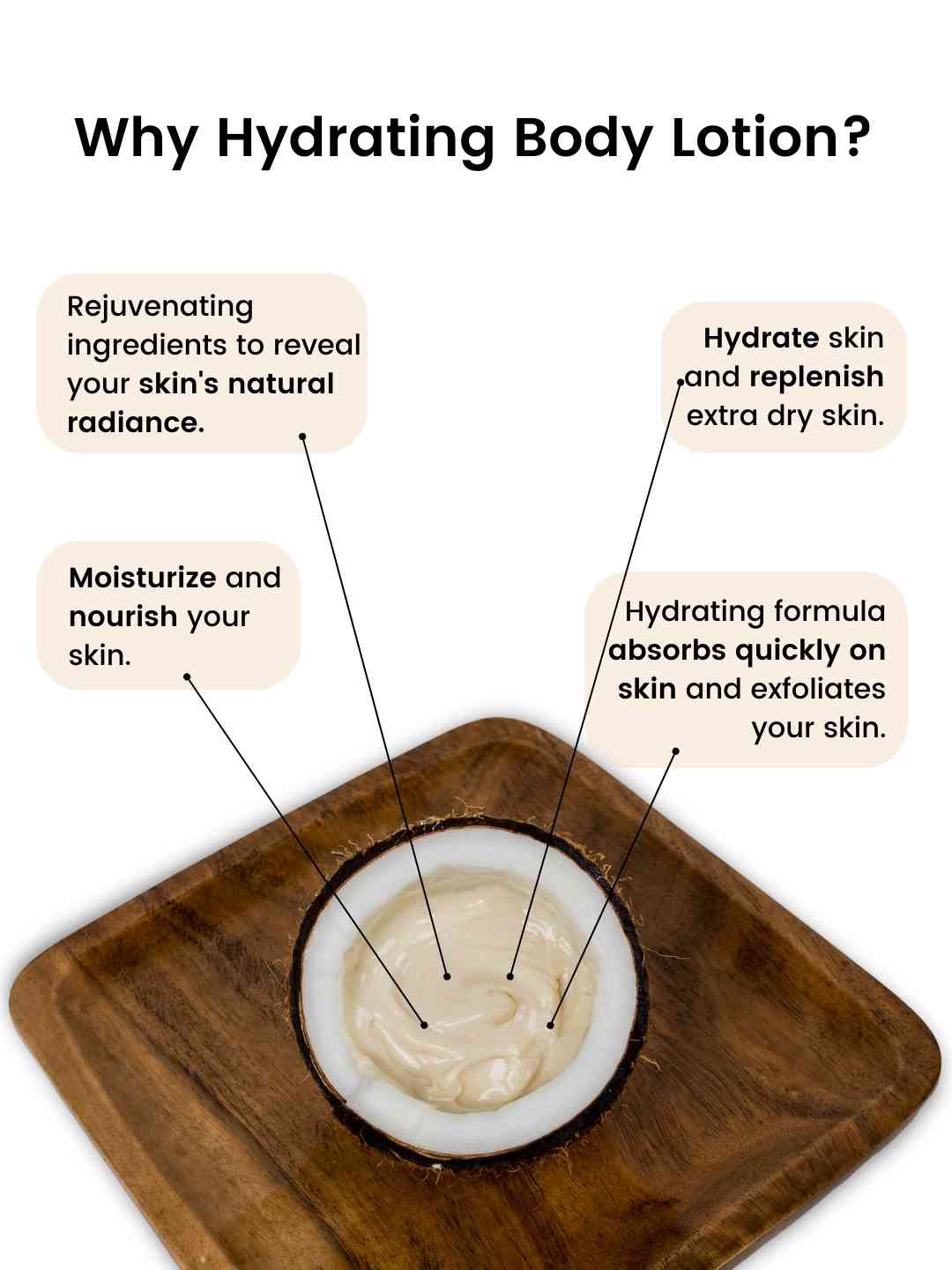 Hydrating Body Lotion is used for extra dry skin and rough parts of the skin, especially elbows, knees to make the skin in these areas soft and nourished.