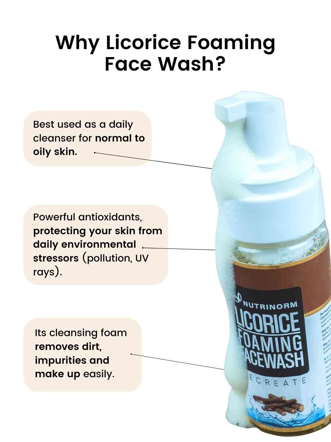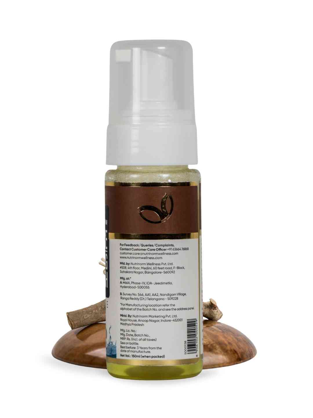 The foaming face wash is a combination of Licorice, Nut grass, Hibiscus and Lemon containing powerful antioxidants and protecting the skin from daily environmental stressors (pollution, UV rays, etc).