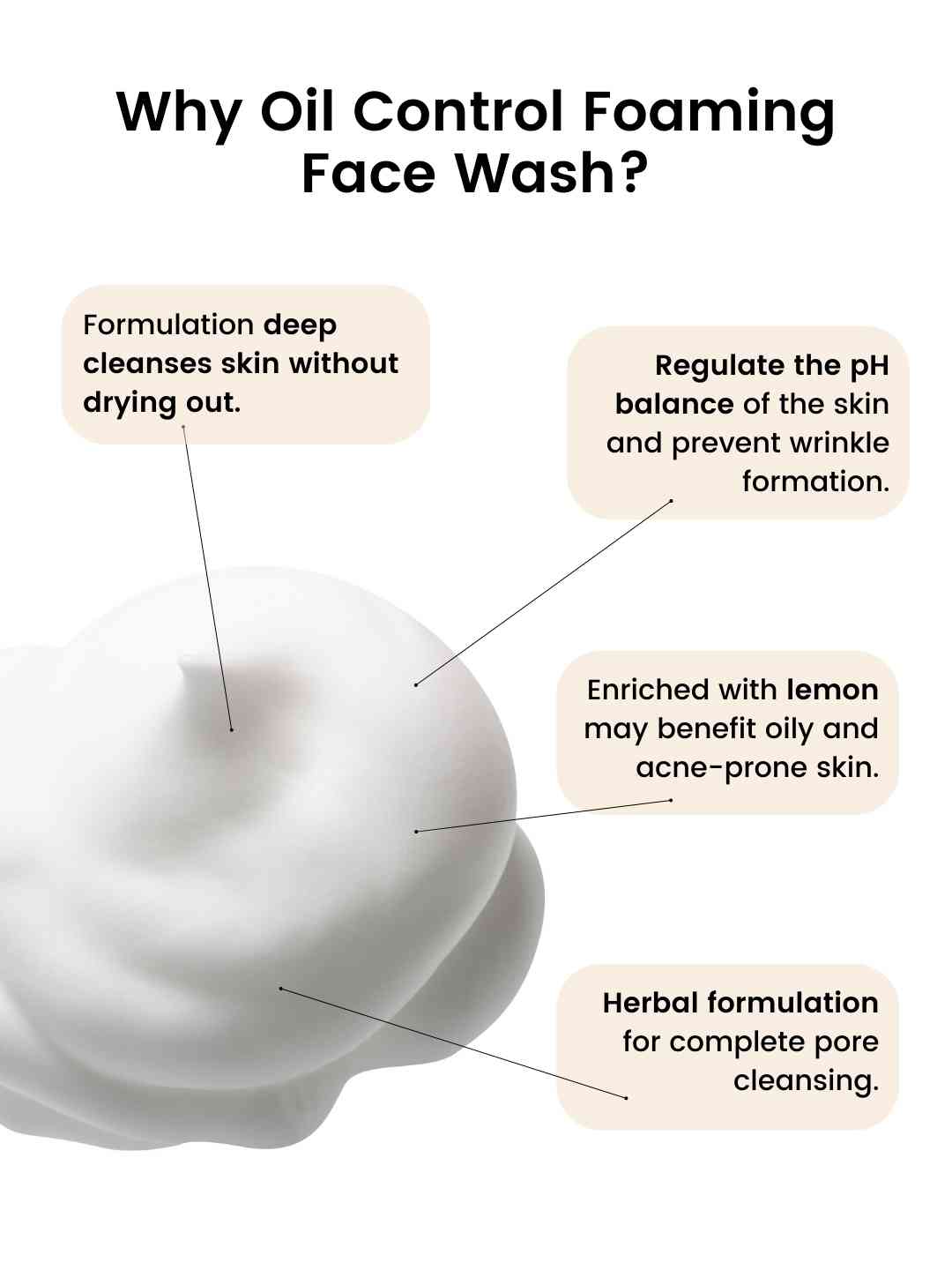 Our Oil Control Foaming Face Wash with its antibacterial and antiseptic abilities may benefit oily and acne-prone skin by preventing excess sebum production.